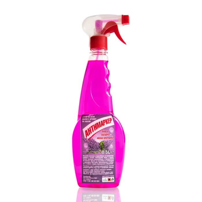 Препаратът не съдържа спирт, безвреден е за емайла на бялата дъска и има мирис на люляк.