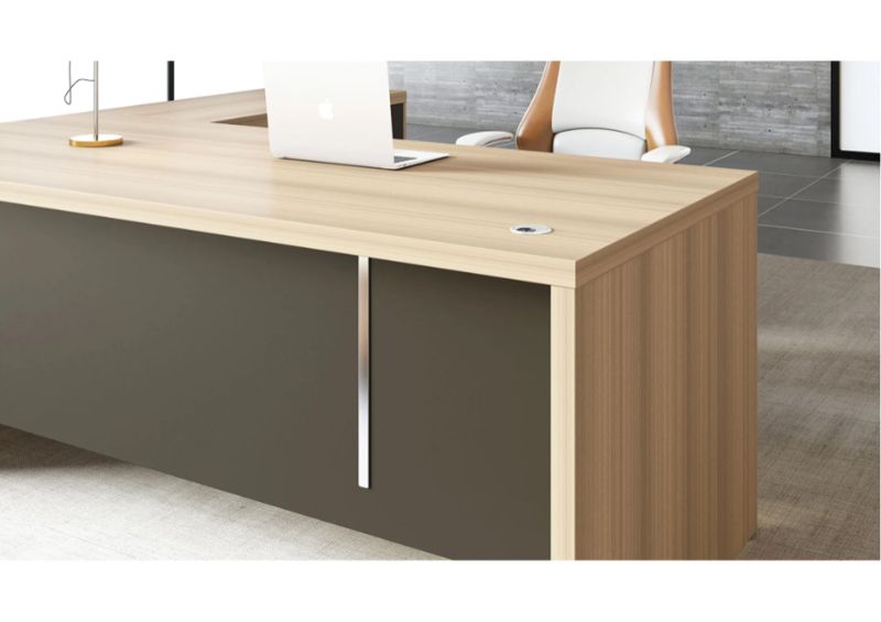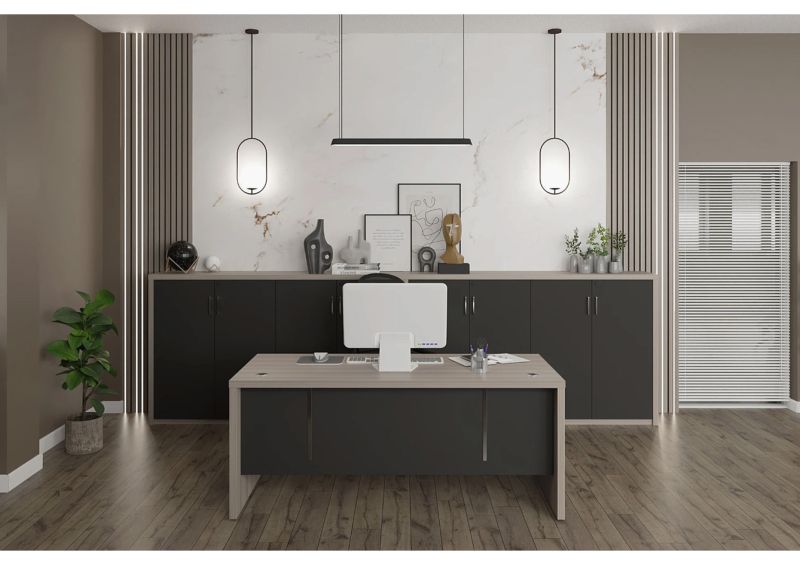 Изработено е от висококачествено ПДЧ с екологично чисти частици, клас E1, с меламиново покритие, което осигурява здравина, устойчивост и лесна поддръжка. Клас E1 гарантира по-здравословна и екологична работна среда, като свежда до минимум вредните емисии на формалдехид. Това подчертава ангажимента на серията към устойчиво и отговорно производство.