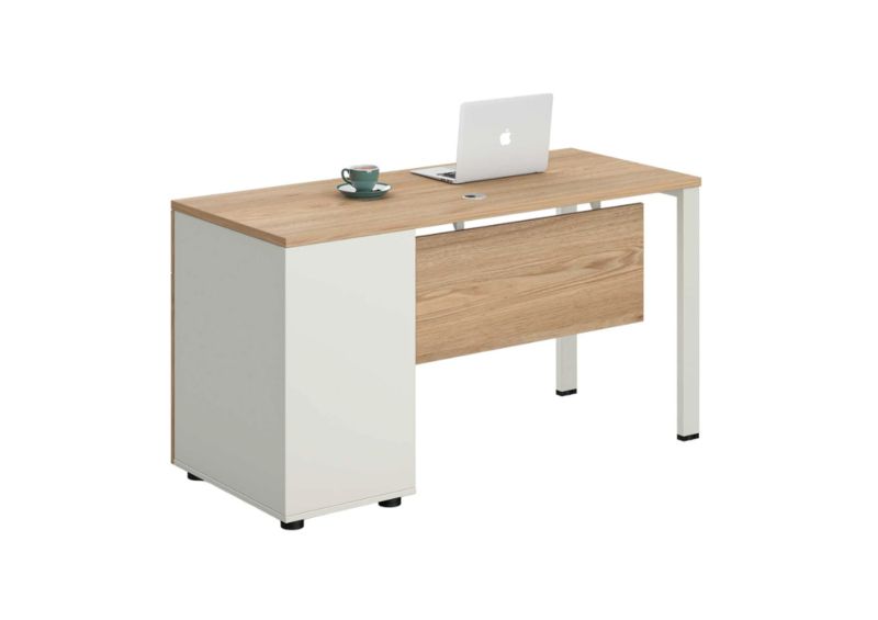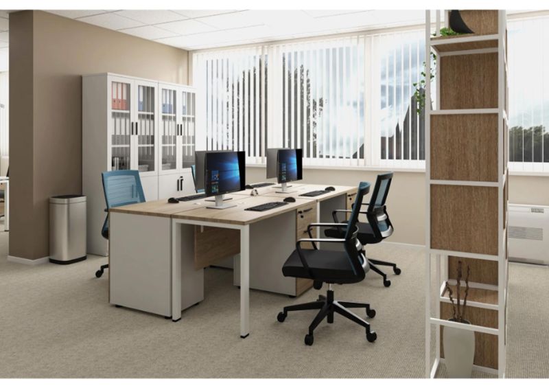 Изработено е от висококачествено ПДЧ с клас E1 – материал с ниски емисии на формалдехид, който допринася за по-здравословна и екологична работна среда. Повърхността е с меламиново покритие, гарантиращо устойчивост на износване, надраскване и дълготрайна употреба. Изборът на мебелировка с клас E1 е израз на ангажимент към устойчиво производство и грижа за здравето.