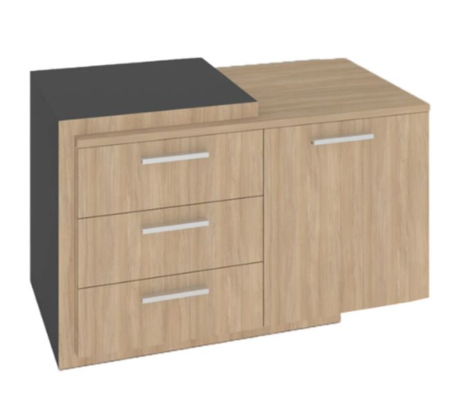 Изработен от ПДЧ с меламиново покритие, контейнерът е устойчив на надраскване и лесен за почистване.