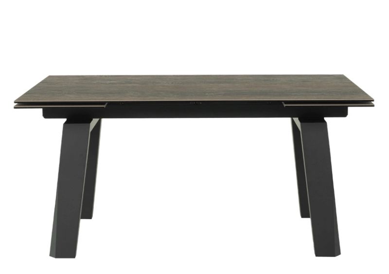 Благодарение на интелигентния разтегателен механизъм масата се разширява от 160 до 240 см, осигурявайки място както за семейни вечери, така и за специални поводи с повече гости. Стабилната метална основа придава характер и модерен индустриален акцент, а ореховият финиш създава усещане за топлина и уют.