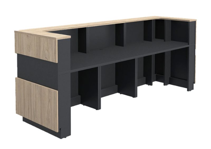 Правият модул за рецепция от серия JOY с дължина 750 мм е практично и функционално решение за надграждане на модулни офис рецепции. Той осигурява допълнително работно пространство и визуална завършеност, като се интегрира безпроблемно с останалите елементи от серията.