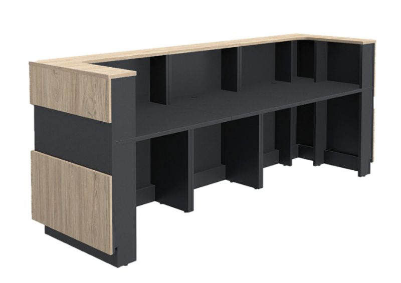 Правият модул за рецепция от серия JOY с дължина 1000 мм е ключов елемент за изграждане на модулни рецепции с професионален и подреден облик. Проектиран за комбиниране със завършващи и ъглови модули от същата серия, той осигурява допълнително работно пространство и визуална цялост на рецепционната зона.