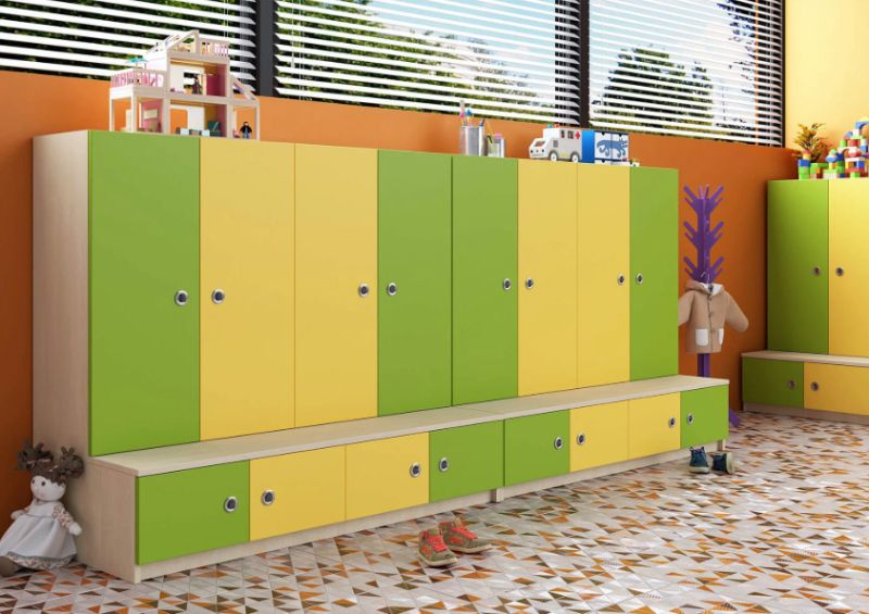 Практичен детски гардероб с функционален шкаф за обувки, създаден специално за нуждите на детски градини, училища и домашна среда. Моделът предлага оптимална организация на дрехи, обувки и лични вещи, като подпомага изграждането на навици за ред и самостоятелност при децата.