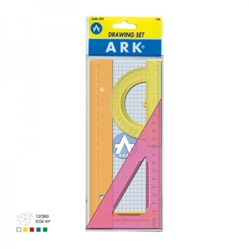 Комплектът включва: - линия 20 см - триъгълник 15см - транспортир 1,98 лв
