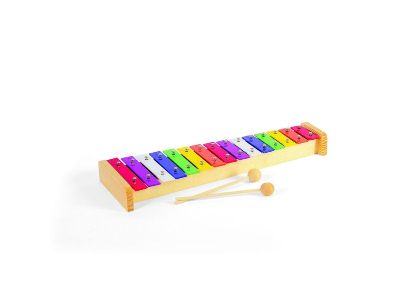 Веселият ксилофон е проектиран с красива и стабилна основа, върху която са подредени разноцветни метални пластини, за да предложи музикално и визуално забавление за деца. Перфектен за развитие на музикален слух, ритъм и координация.