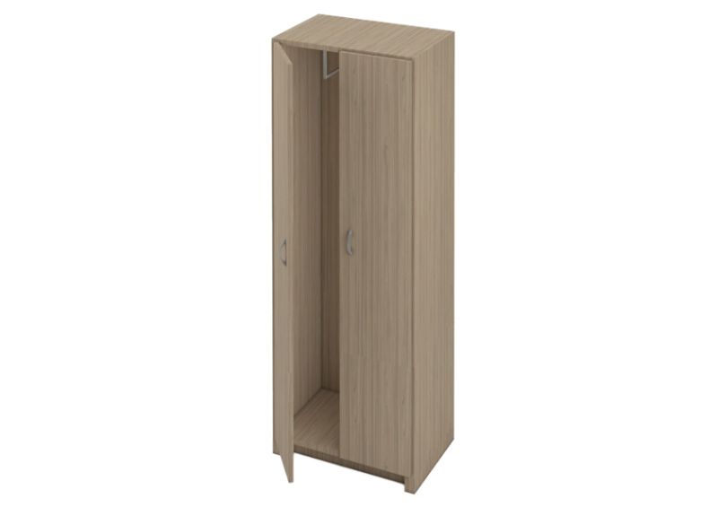 Гардеробът е изработен от ПДЧ с меламиново покритие, което осигурява лесна поддръжка, устойчивост на ежедневно натоварване и дълготрайна употреба. Двете врати осигуряват лесен достъп и добра организация, а възможността за избор на цвят позволява перфектно съчетаване с останалите офис мебели.