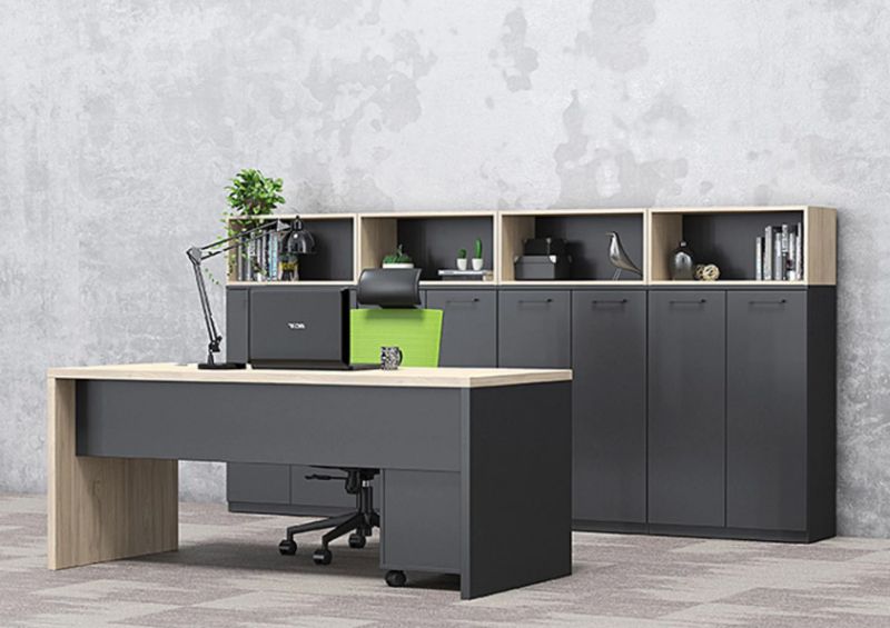 Изработен от ПДЧ с меламиново покритие, шкафът осигурява устойчивост при ежедневна употреба и лесна поддръжка. ABS кантовете с дебелина 0.2 мм защитават ръбовете и допринасят за дълъг експлоатационен живот. Компактните размери го правят подходящ както за самостоятелно използване, така и като част от цялостна модулна офис конфигурация.