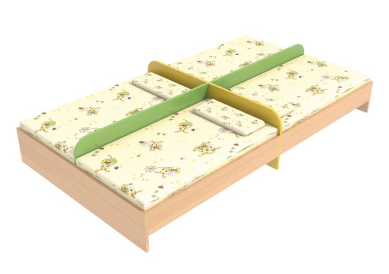 Това четворно детско легло е проектирано за използване с четири матрака с размер 70 x 140 см, което го прави изключително подходящо за детски градини, ясли, учебни и образователни центрове, както и за специализирани детски пространства.