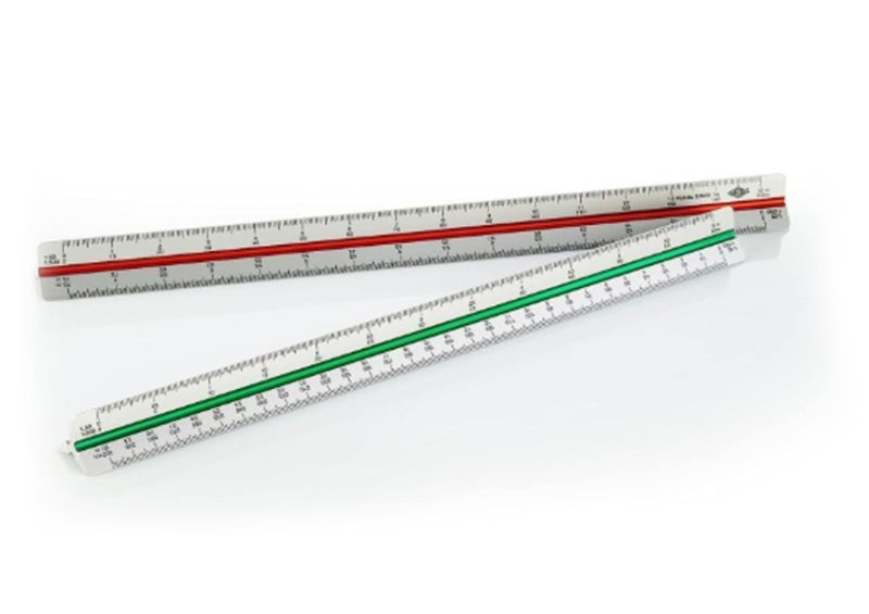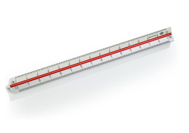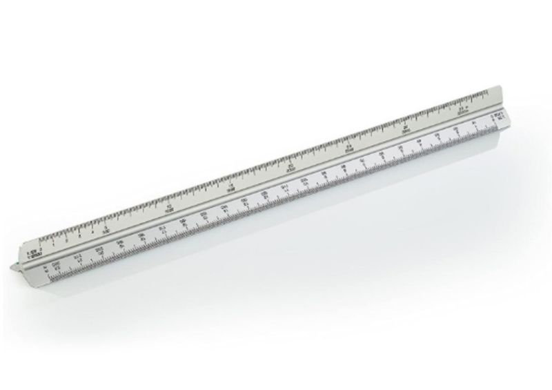 Линийката разполага с широк набор от практически мащаби, ясно обозначени с релефна, лесна за четене скала, което я прави идеална за етажни планове, технически чертежи, модели и детайлни проекти. Благодарение на теглото си от 108 гр, тя се плъзга значително по-малко в сравнение с пластмасовите варианти, осигурявайки по-голям контрол и прецизност.